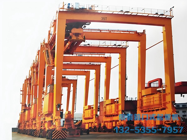 門式起重機:輕松堆5–7層,跨度可達20–70 m,一條軌道覆蓋15列箱,密度最高。